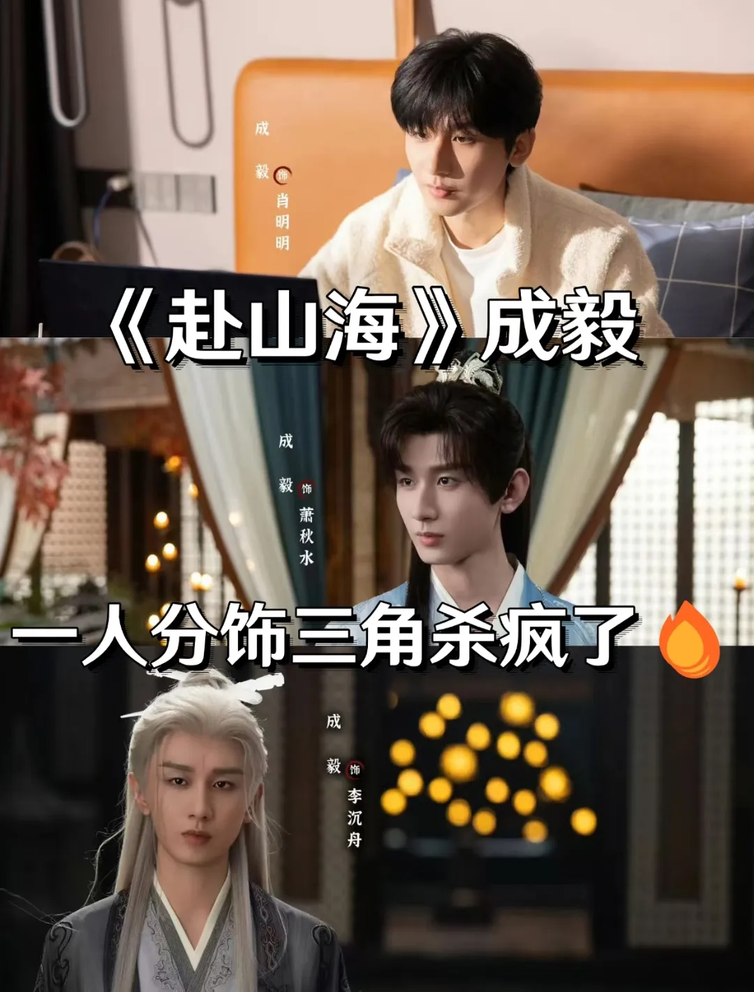 打头阵的《赴山海》,成毅在剧中一人分饰三角:沉迷武侠小说的现代社畜肖明明、心怀侠义的少年剑客萧秋水,以及冷酷霸气的权力帮帮主李沉舟。