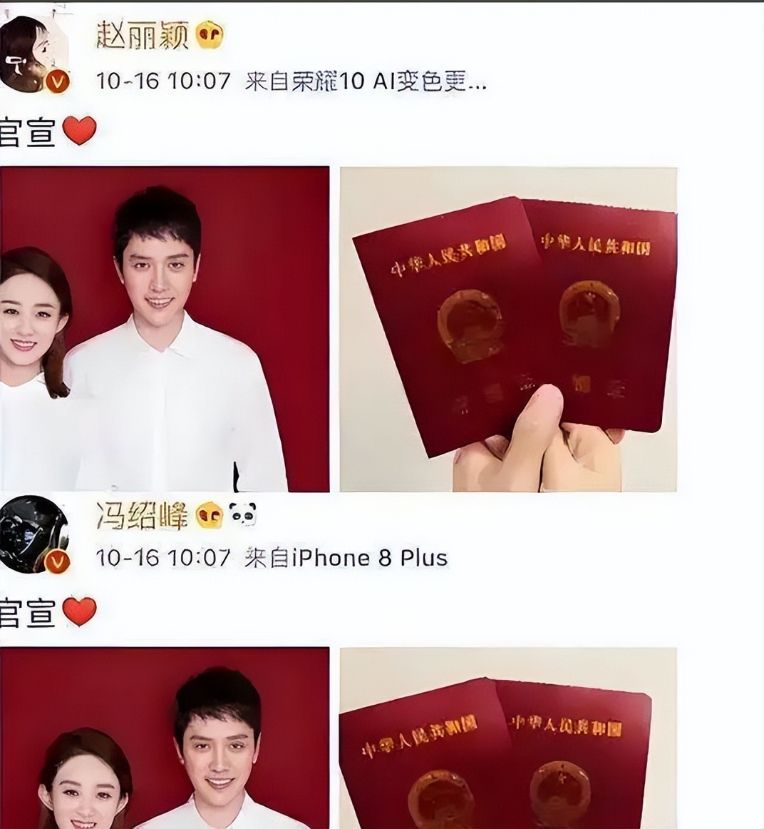 但即便他们晒出了红色结婚证,网友依然不买冯绍峰的账。